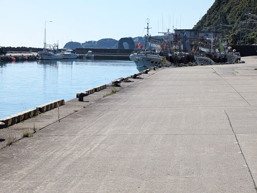 フェリーターミナル→港(漁船)→水門→なべつる岩→杉(人工林)→調理師の森→ブナの大木→親不孝通り(叶寿司付近)→役場(新庁舎)→信号機→御神木